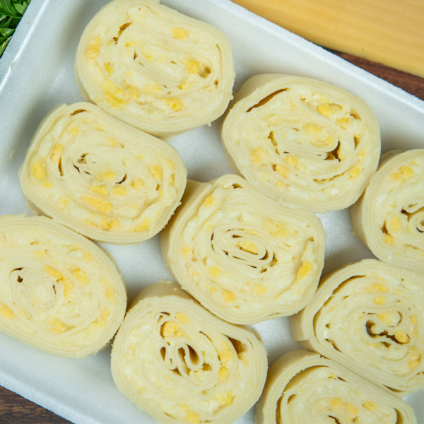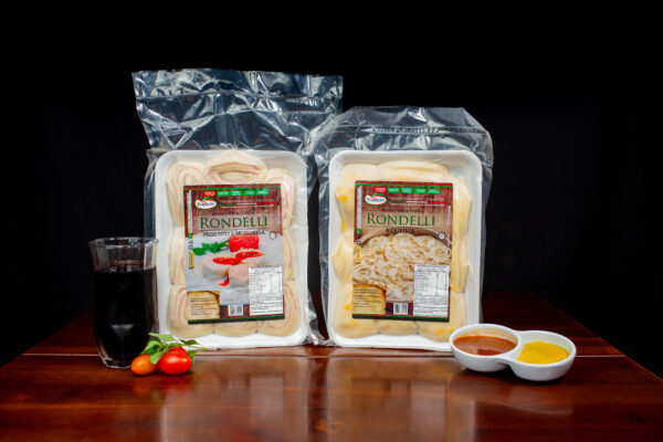 Massa fresca tipo rondeli , recheado com quatro queijos (mussarela, provolone, prato e requeijão).