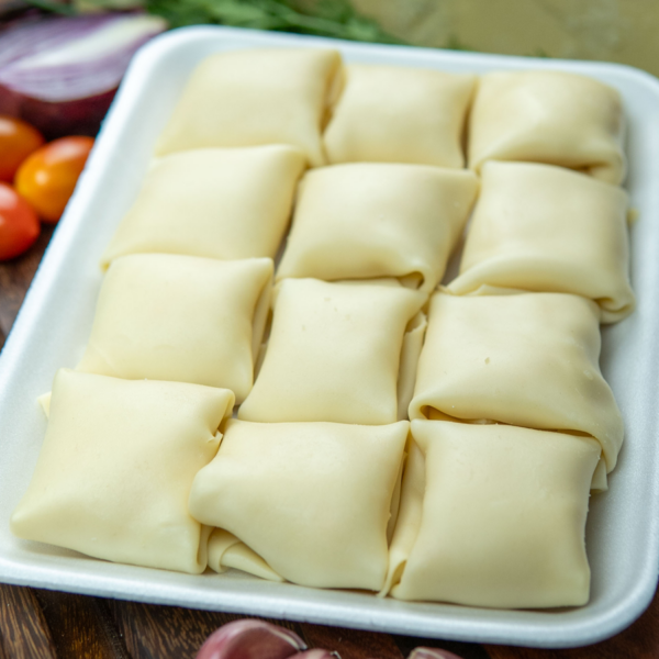 Massa fresca tipo sofiateli , recheado com quatro queijos (mussarela, provolone, prato e requeijão).